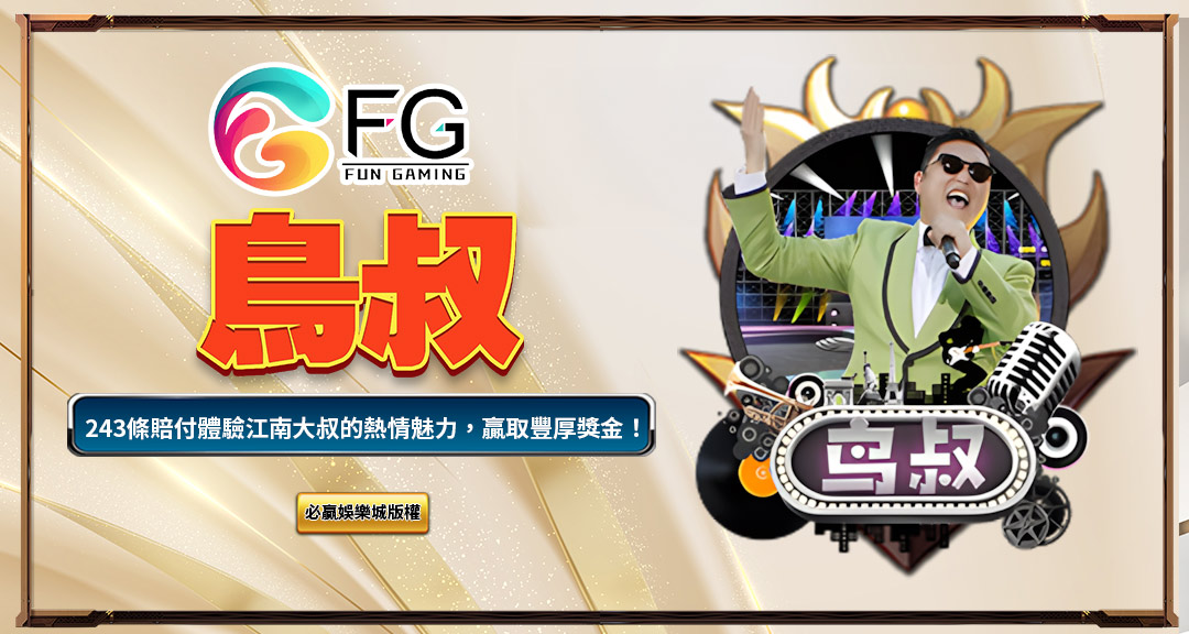 在眾多風格強烈的主題電子遊戲中,FG電子推出的《鳥叔》無疑是一款令人印象深刻的作品。這款遊戲以韓國歌手鳥叔(PSY)為視覺主角,整體畫面充滿潮流感與舞台燈光氛圍,彷彿讓人置身於音樂MV的節奏之中。畫面中角色舞動的瞬間與經典的「江南Style」動作設計,使得這款遊戲不僅僅是視覺享受,更讓每一次轉動都帶著娛樂性的驚喜感。