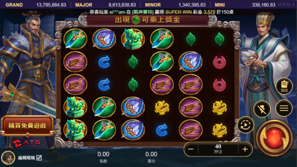 ATG電子-赤三國是一款兼具視覺享受與刺激玩法的線上電子遊戲。從精緻的人物立繪、鮮明的圖示設計到高額彩金與特殊玩法,每一個細節都在強化三國的主題氛圍。同時,購買免費遊戲與彩金累積系統,也讓玩家在追求大獎的過程中更具自由度與策略性。