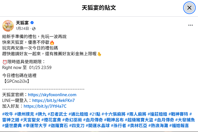 從天狐宴的遊戲運營策略來看,官方粉絲專頁與遊戲官網是目前最穩定釋出序號的地方。