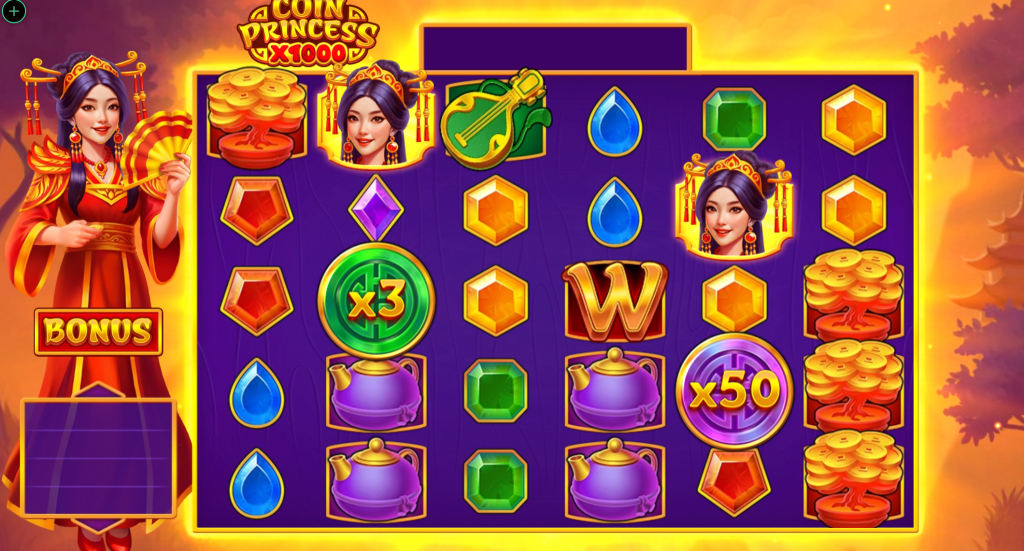 BNG電子-公主賞千金最具吸引力的部分之一,就是其BONUS機制。盤面左側的「BONUS」區域會根據遊戲過程逐步填滿,當達到指定條件時,玩家將進入額外的遊戲模式,享受更多倍數加成與免費旋轉。