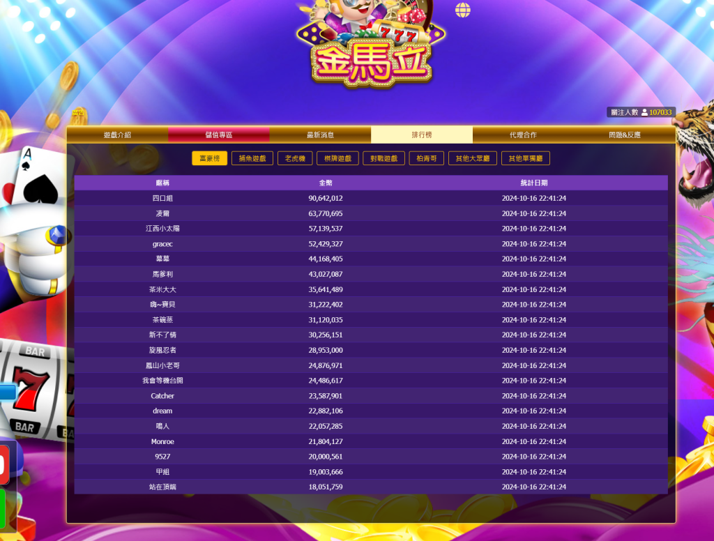 然而,令人疑惑的是,官網顯示註冊人數高達107033人,但這個數字究竟是真實的玩家數量,還是另有隱情?畢竟,許多小型娛樂城在宣傳時,往往會用浮誇的數據吸引眼球,實際活躍玩家可能並不如數字所顯示的那麼多。