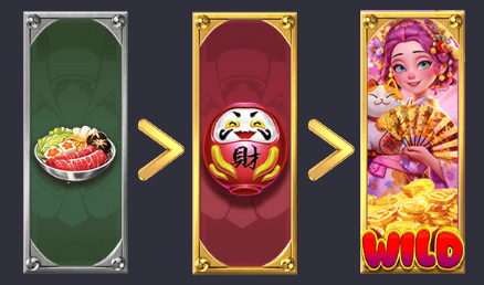 • 銀框符號被替換成新符號後,變成金框符號,並在第二輪掉落時轉換成百搭符號(Wild)。
