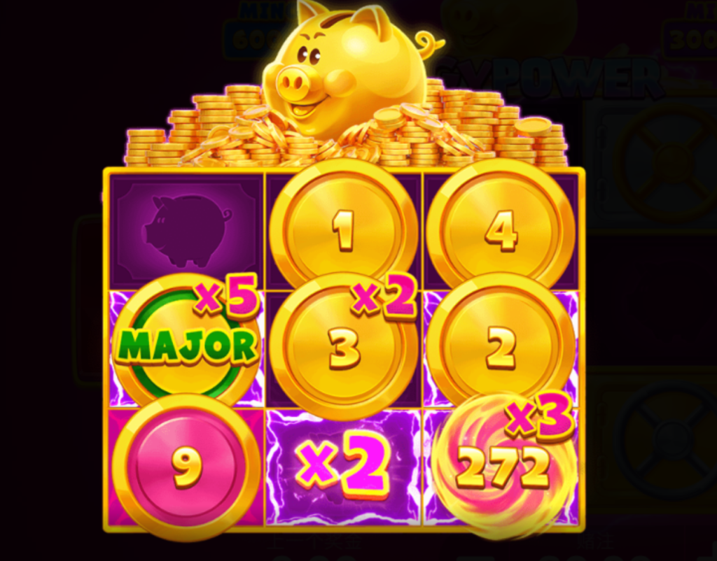 在《財氣豬寶:擊紅利》中,「小豬倍數功能」是一個在獎金遊戲或力量獎金遊戲期間隨機觸發的特殊機制。這意味著,當你進入這些模式時,每次旋轉都可能帶來更多驚喜——不僅是普通的獎金圖案,還可能附帶額外的倍數效果。