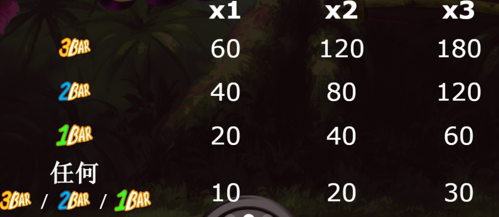 - BAR圖案分為1BAR、2BAR和3BAR,賠付範圍從10倍至180倍不等。