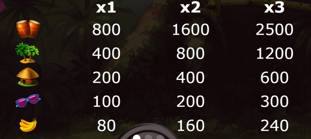該遊戲包含多樣的符號,如金色鼓、椰子樹、小屋、眼鏡和香蕉,每一個符號都以鮮明的設計呈現。特別是金色鼓作為高賠付的標誌,玩家有機會觸發高達2500倍的回報。此外,BAR符號的多樣性(1BAR、2BAR和3BAR)也為遊戲提供更多的中獎機會,組合「ANY BAR」更能讓新手快速上手。