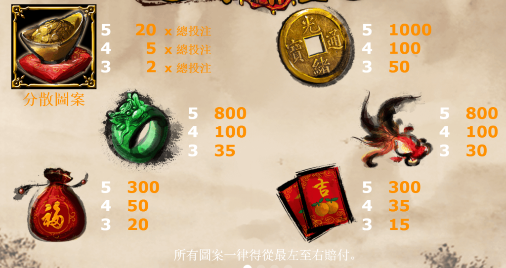 - 4個金元寶:可獲得投注額的5倍。