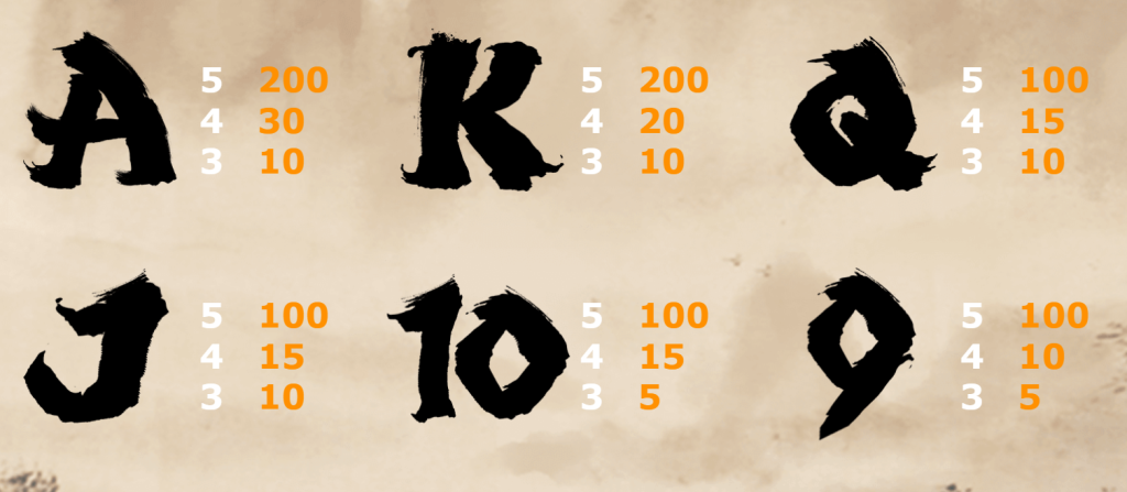 - A與K:5個圖案可獲得200倍回報。