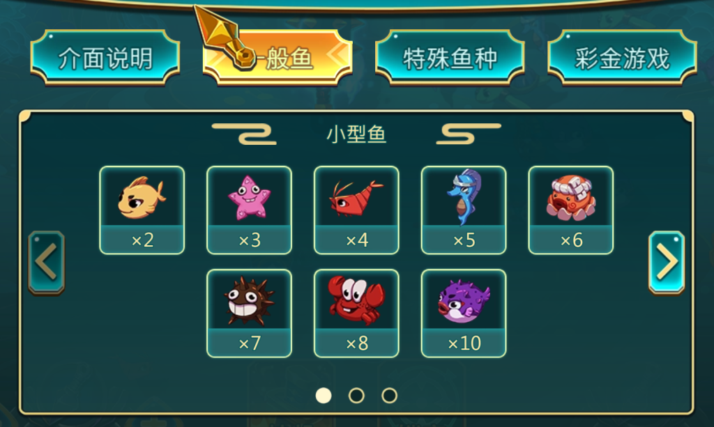 小型魚是遊戲中最容易捕捉的對象,賠付倍數從2倍到10倍不等,包括如黃魚、海星、小蝦等圖案。我認為,這些符號的低門檻賠付設計,為新手玩家提供了穩定的收益來源,同時也為進一步的挑戰做好鋪墊。