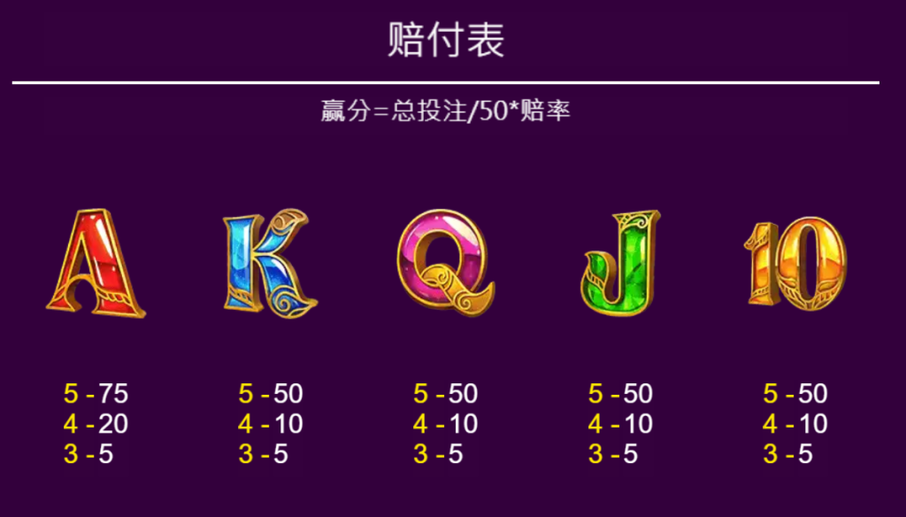 遊戲的賠付公式為:贏分=總投注÷50×賠率。這一公式簡單直觀,讓玩家能夠輕鬆計算出每次旋轉的潛在回報。我覺得這種設計非常適合希望快速上手的玩家,同時也為資深玩家提供了策略性的選擇空間。