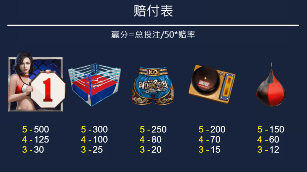 整體來看《拳力制霸》的賠付結構非常平衡,高價值符號如「舉牌女郎」和「擂台」提供了巨大的刺激性,而中低價值符號則保證了遊戲的流暢性和持續性。我覺得,這種平衡讓遊戲既充滿挑戰,又不失穩定性,適合各類玩家。