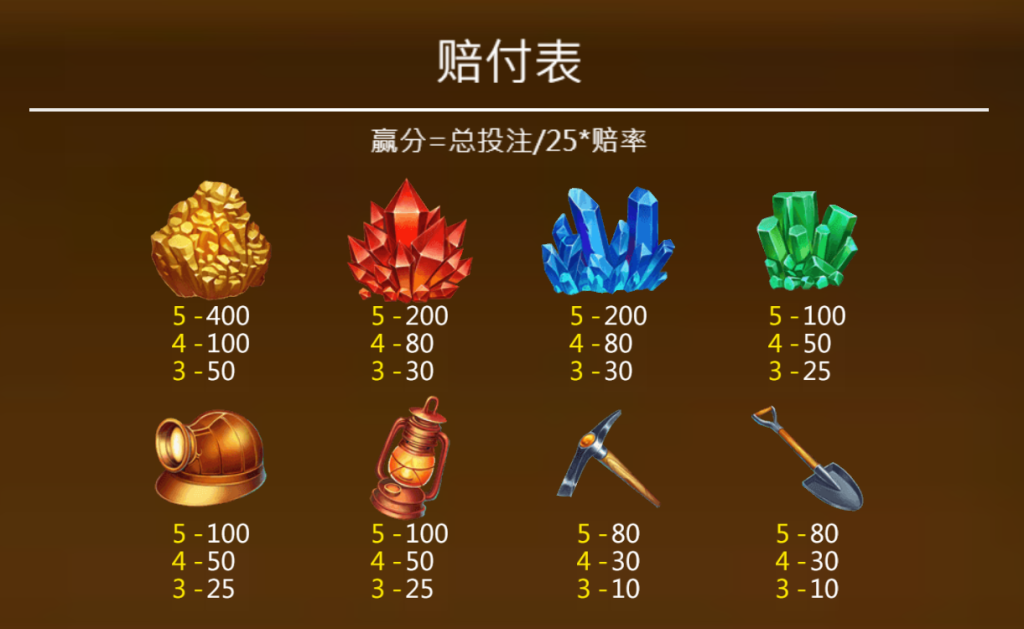 《寶礦利》的賠付公式透明易懂:贏分=總投注/25×賠率。這樣的設計讓玩家能清晰地了解每一次旋轉的收益計算,有助於他們根據自己的投注策略來調整遊戲節奏。我認為這種透明的機制非常貼心,尤其對於追求穩定收益的玩家來說,這是一種值得信賴的設計。