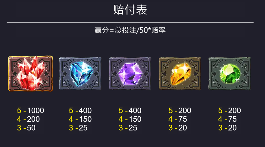 遊戲的高價值符號包括各種顏色的寶石:紅色寶石的賠付最高,5個紅寶石可帶來1000倍的驚人獎勵,這對於追求高回報的玩家來說是一大吸引力;其次是藍色和紫色寶石,各自最高可達400倍。黃色和綠色寶石則提供200倍的賠付,適合希望穩定贏分的玩家。我認為這樣的設計,不僅激發玩家的挑戰慾望,也同時兼顧了不同風險偏好的需求。