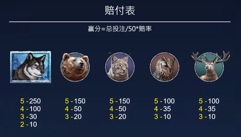 值得一提的是「貓頭鷹」與「麋鹿」符號,它們同樣有不錯的回報,連線滿5個時將獲得100倍的賠付。我覺得,這樣的設計很好地平衡了高額與低額符號之間的節奏,讓玩家既能追逐頂級大獎,又能在中等獎勵中獲得持續回報。