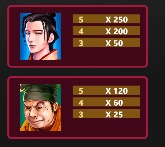 遊戲中最高賠付的符號是年輕帥氣的男子,當5個符號連線時,可贏得高達250倍的獎金。我覺得這個符號不僅代表了故事的核心角色,也是玩家追求高額獎勵的重點目標。緊隨其後的是笑容詭異的男子,5個連線可獲得120倍的獎金,這讓玩家在追求大獎的同時,也能享受到穩定的回報。