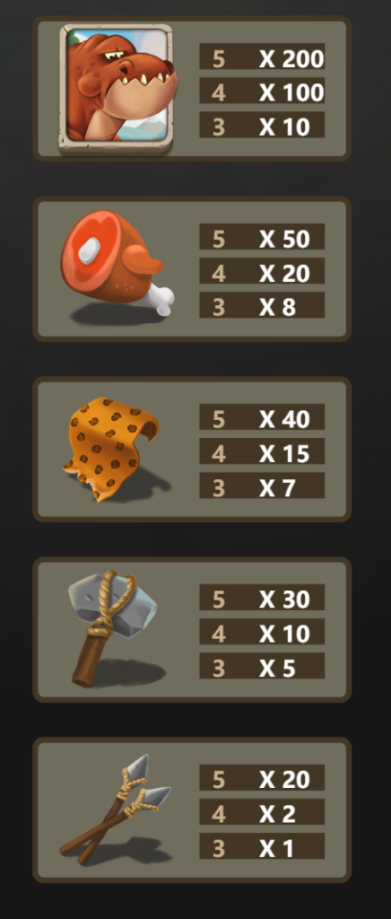 《原始蛋疼人》的賠付設計非常符合遊戲主題,從胖胖原始人到各種工具符號,每一個設計都充滿了史前時代的趣味性與冒險感。而且,高賠付符號的設定讓玩家對每一次旋轉都充滿期待,而中低賠付符號則確保了玩家能持續享受遊戲的樂趣。