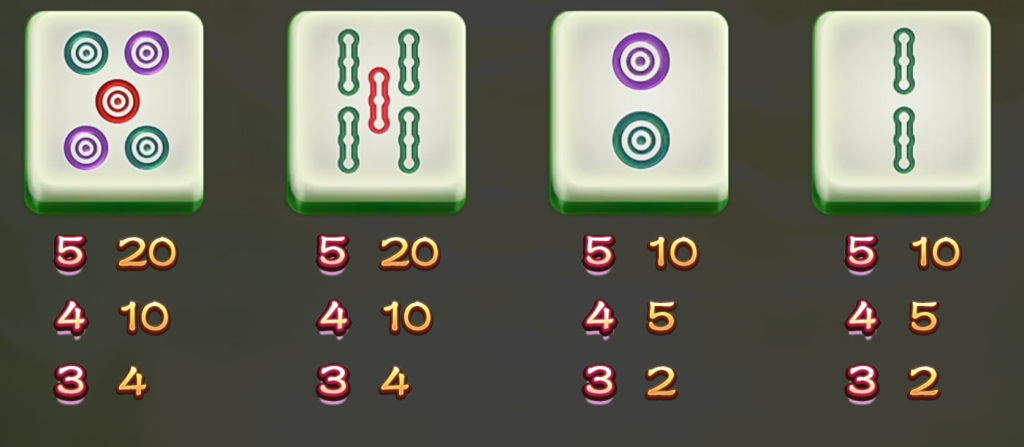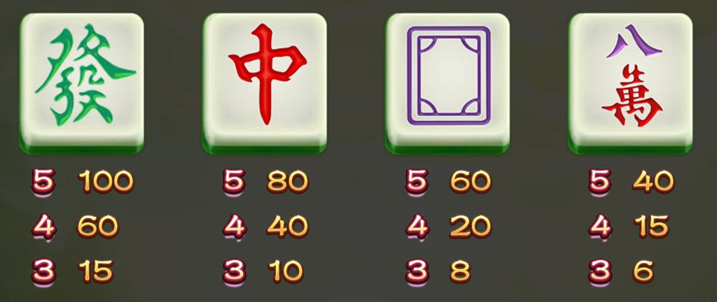 對於「中」符號來說,五個「中」符號會讓玩家獲得80倍的回報,四個符號則為40倍,三個則是10倍回報。這樣的賠付設計相當合理,讓玩家每一次的遊玩都有機會獲得不小的收穫。