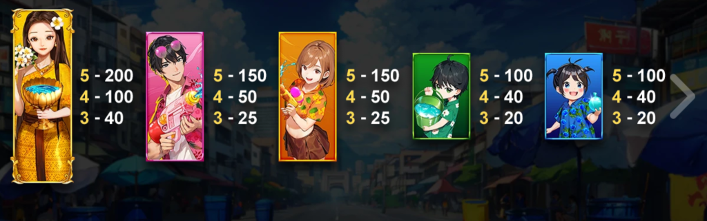 其次是手持水槍的時尚男孩與女孩符號,兩者的最大賠付分別為150倍。他們的加入讓遊戲多了一層現代節日的活力感,象徵了年輕人參與節慶的快樂氛圍。我認為,這樣的角色設計拉近了玩家與遊戲的情感聯繫。