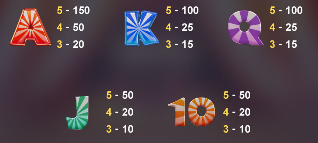 低賠符號則由常見的撲克牌字母A、K、Q、J,以及數字10組成。儘管它們的賠付值較低,最高只有150倍,但這些符號卻是遊戲中的基礎部分。我認為它們的出現頻率更高,讓玩家即使在短時間內未觸發大獎,仍然能保持一定的遊戲節奏和小額獎金的回饋。