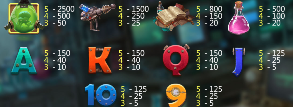 遊戲畫面充滿蒸氣龐克與科技融合的視覺風格,五軸轉輪被設計成試管裝置,每次旋轉就像是啟動一場實驗,而符號則涵蓋了奇怪的生物瓶、神秘藥水、科技符號以及強力的機械裝置,讓玩家體驗前所未有的科學狂熱。