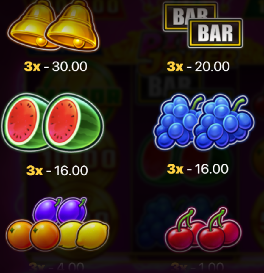 遊戲中,玩家將看到熟悉的經典水果機符號,如櫻桃、西瓜、葡萄、BAR圖案等,搭配高價值的金幣獎勵符號。此外,粉紅小丑是遊戲的核心角色,代表著幸運與豐富獎金。四種累積獎金(Grand、Major、Minor、Mini)讓玩家有機會贏取豐厚獎勵,而金幣數值則提供額外的即時獎勵,增加遊戲的刺激感。
