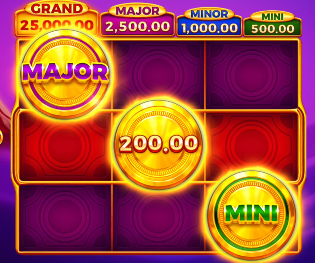 在遊戲過程中,當滾軸的中間行落下三個金幣符號時,就會觸發BonusGame。一旦進入這個模式,玩家就有機會獲得多種獎勵,甚至包含2倍、5倍的乘數獎勵,以及高額的Major、Grand彩金。尤其是當金幣不斷累積時,那種視覺上的金光閃耀,搭配火山般的爆發感,真的會讓人感覺到財富就在眼前。