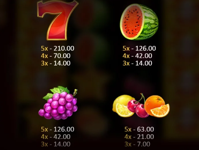 我認為這款遊戲最吸引人的地方在於其40條賠付線的高回報機制,讓玩家在每次旋轉時都能享受到豐富的連線機會。遊戲採用4×5轉軸設計,提供更多排列組合的可能性,而主要圖案則延續水果機的經典元素,包括西瓜、櫻桃、橙子等,搭配金黃色調的畫面風格,讓整體遊戲畫面更具華麗感,彷彿置身於一場紙醉金迷的嘉年華之中。