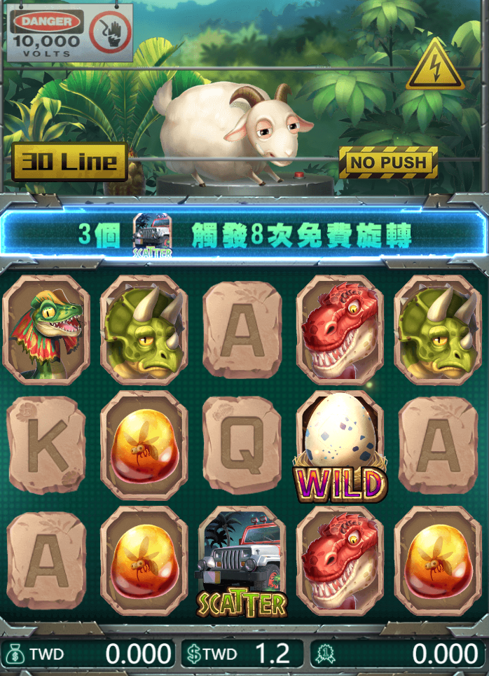 遊戲的核心機制圍繞著多種獎勵機會展開。玩家在轉動時有機會觸發WILD百搭圖標,這顆神秘的恐龍蛋可以替代除SCATTER外的所有符號,提高連線機率。而當玩家成功收集到三個SCATTER圖標,即可開啟免費遊戲模式,獲得八次免費旋轉。