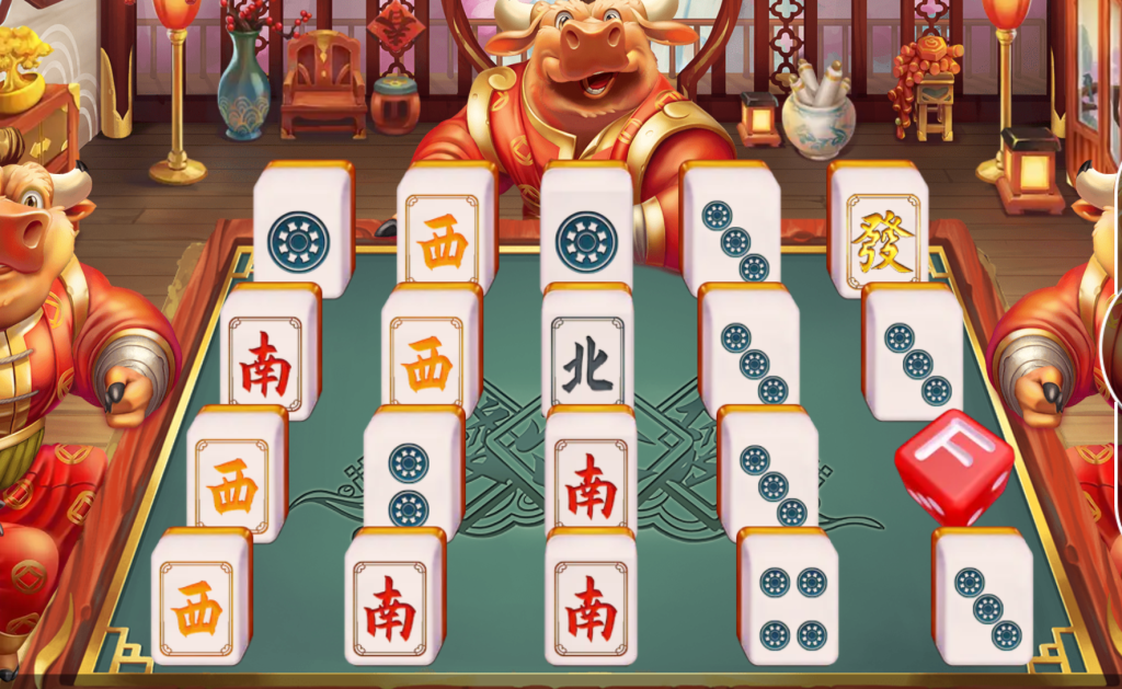 遊戲界面設計上,玩家將會見到一個精緻的桌面,周圍擺滿了中國風格的裝飾,並有著可愛的金牛吉祥物在旁邊守護,為遊戲增添了一份趣味性。每一局遊戲中,玩家需要運用麻將的規則,配對相同的牌組來獲取獎勳,並且每當匹配成功時,螢幕會顯示豐厚的獎勳,讓遊戲更加刺激。