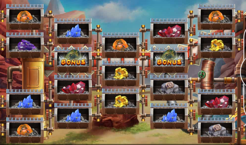 除了基本轉軸玩法,遊戲還設有BONUS模式,當出現三個以上BONUS圖示,就能啟動特殊回合。這部分不只提高中獎倍率,更是《淘金樂》的核心亮點之一。不同顏色的寶石象徵不同分值,有如在礦場中慢慢堆疊財富,視覺與獎勵都讓人感到極度滿足。