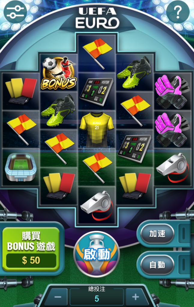 《歐洲盃》是XG電子推出的一款足球主題拉霸遊戲,遊戲畫面彷彿將整座大型球場濃縮進螢幕之中,無論是黃紅牌、球鞋、哨子,甚至是計分板與球衣圖案,每一格轉輪都散發濃濃賽事氛圍。對喜歡足球的玩家來說,這款遊戲不只是拉霸,更像是在場邊參與一場比賽。
