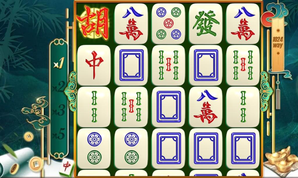 這款遊戲將傳統麻將牌融合現代轉輪機制,讓我覺得既熟悉又新奇。各式麻將牌面如中、發、萬字、筒子、條子等皆是獎勵的圖騰,連線時還有「胡」字閃現,讓每一局都充滿刺激的變化。牌面消除後還會觸發倍數機制,從x1遞增至x5,讓連線的爽感不斷堆疊,這種節奏我認為特別過癮。