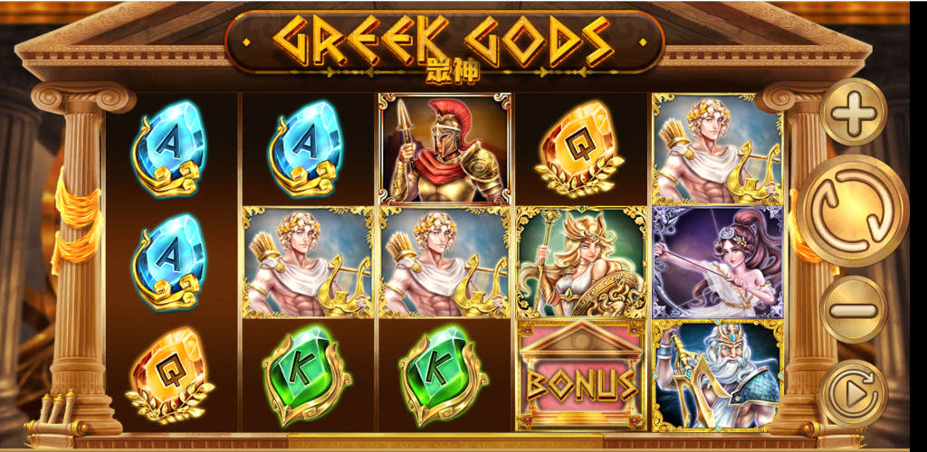 遊戲採用五輪三排設計,圖示充滿細節與光影質感,不論是寶石字母還是神祇圖騰都極具視覺衝擊力。每一輪轉動都像是命運轉盤,期待著神力降臨的刺激時刻,尤其當BONUS神殿圖案亮起,更象徵著獲得神域獎賞的機會即將來臨。