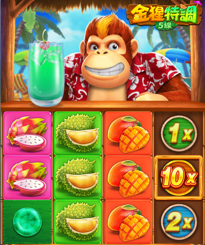BE電子-金猩特調遊戲介紹:熱帶水果主題五線拉霸轉出乘倍爆擊爽感!