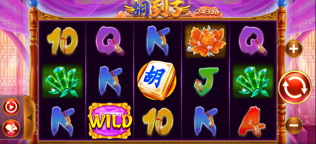 《胡到了》採用243線連線方式,簡單來說,只要左至右相連出現三個相同圖示,就能獲得對應獎勵。這種設計比傳統拉霸更容易中獎,讓整體遊戲節奏明快且不失期待感。