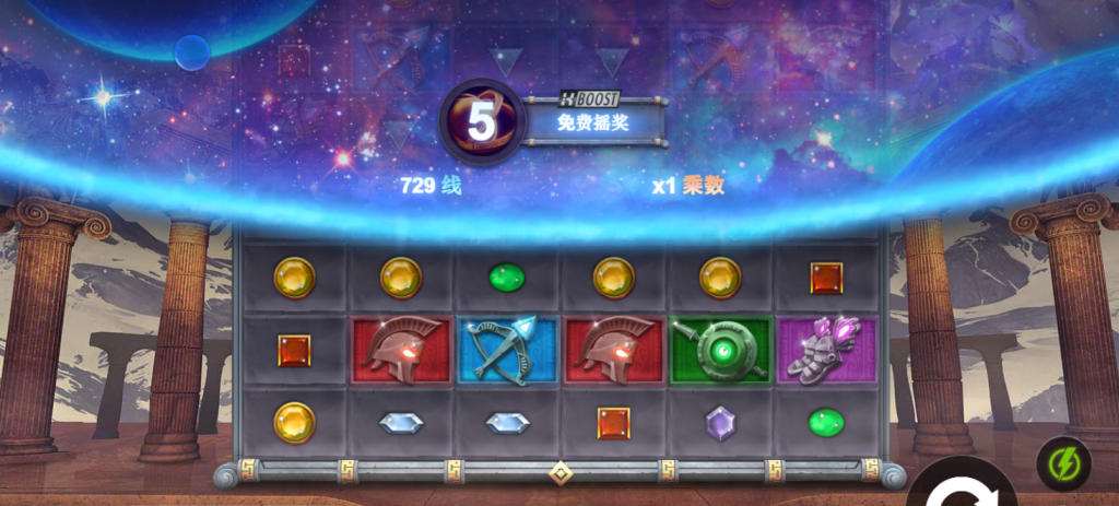 《QT電子-超巨阿特拉斯》是一款視覺氣勢磅礴、玩法細節豐富的6軸老虎机遊戲。遊戲背景以壯麗的希臘神殿與星辰宇宙為舞台,讓玩家宛如置身於天地交織的奇幻領域。