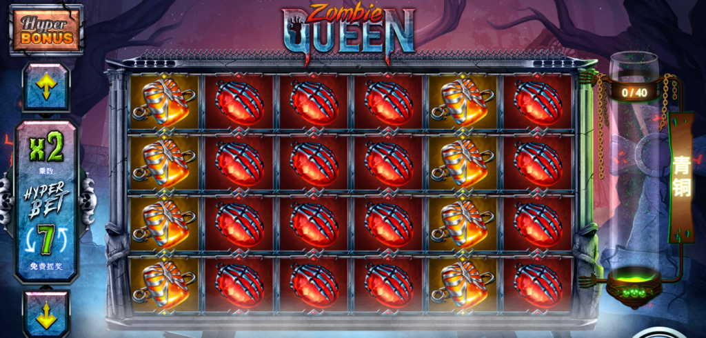 進入遊戲後,玩家可以立即感受到《殭屍女王》的獨到魅力。最令人期待的,就是那個帶有變數選項的「Hyper Bonus」功能。你可以選擇進入5次、7次或8次免費遊戲模式,並搭配1倍、2倍或3倍乘數,根據自身風險偏好作出不同選擇。