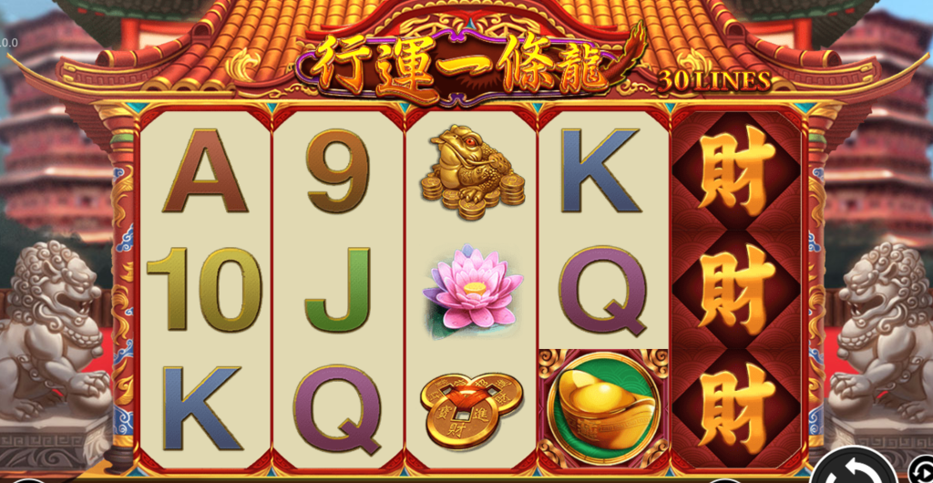 《RSG電子-行運一條龍》是一款充滿東方吉祥氛圍的五輪30線老虎機遊戲,從畫面設計到符號選擇,整體風格都讓人有一種年節喜氣與財運到來的感受。遊戲畫面以傳統宮殿為背景,兩側搭配守門石獅與金紅色的屋脊設計,整體質感沉穩又大氣。