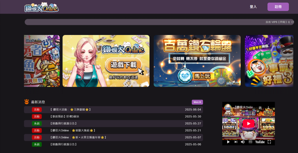 《鑽很大娛樂城》相當注重社群互動與遊戲推廣。首頁內嵌YouTube頻道影片,定期更新遊戲實況與活動介紹,並搭配「事前預約」、「分享活動」、「直播抽獎」等方式與玩家互動。這類策略讓平台不再只是單向操作,而是鼓勵玩家透過社群參與建立歸屬感。