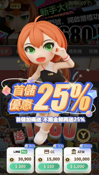 在玩家完成初步綁定與LINE加好友後,平台即導引用戶進入下一階段,也就是首儲加碼方案。不同於部分平台將儲值門檻設定為500元或更高,《贏很大娛樂城》選擇了「不限金額門檻」的回饋設計,也就是即使只儲值150元,也可享受25%的回饋比例。